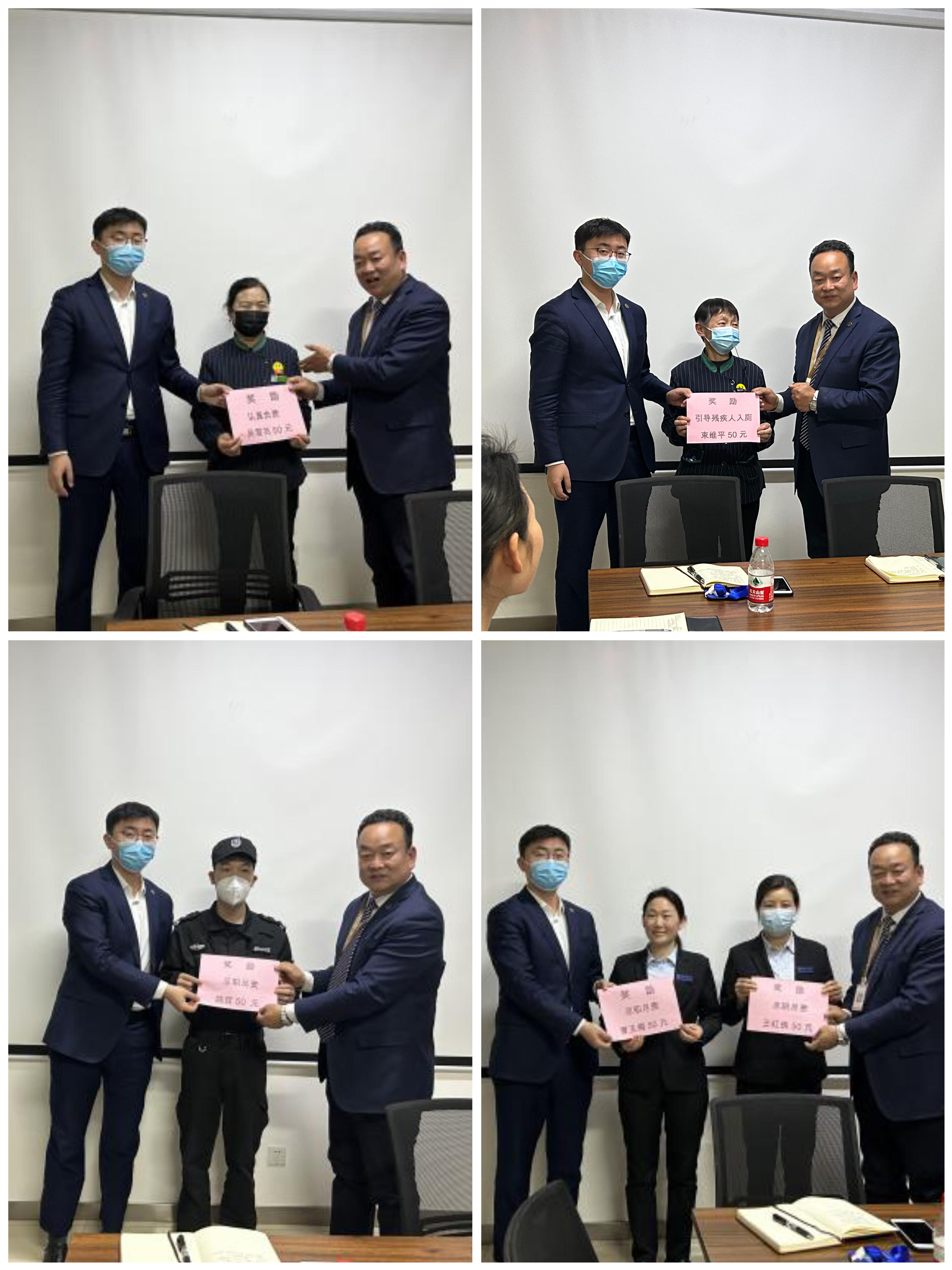 会上,华体会体育商管总经理助理、物业部分管领导兰子君、物业部经理安斌向获得表彰的姚哲、王红侠、曹玉梅、程佳乐、束维平、吴雪花等6名同事颁发荣誉。近期,华体会体育广场物业部的工作得到了社会及广大商户的认可。有不辞劳苦仔细查看多天监控记录最终找到为客户找到了遗失物品秩序部同事姚哲;有通过自己的细心和爱心为客户找到了丢失笔记本电脑的秩序部同事王红侠、曹玉梅;有动之以情,晓之以理,使大家自觉、规范停放电动车,自觉遵守商场消防规定的秩序部同事程佳乐;保洁部束维平同志爱心助残,吴雪花同志任劳任怨用心做好保洁服务的精神都值得全体员工学习。